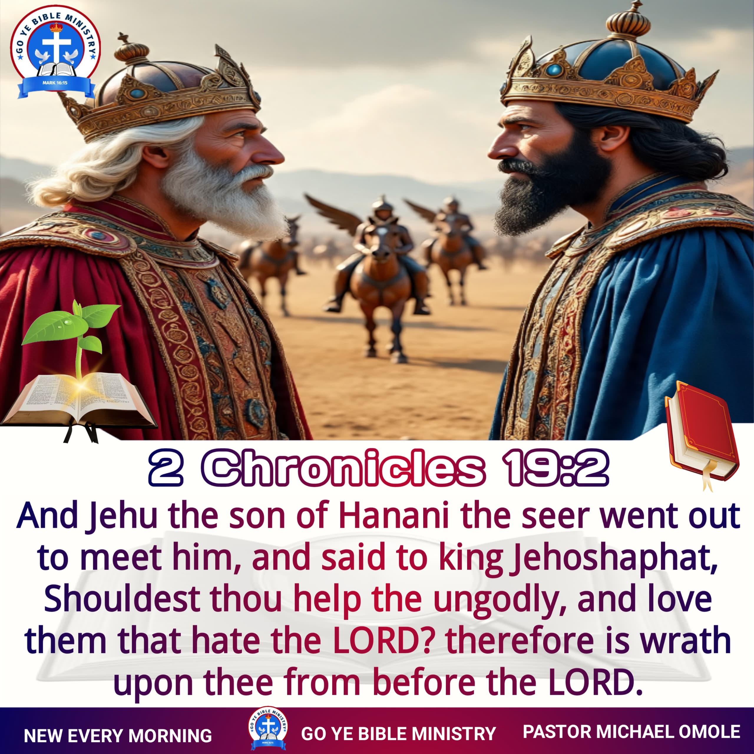TEXT: ” And Jehu the son of Hanani the seer went out to meet him, and said to king Jehoshaphat, Shouldest thou help the ungodly, and love them that hate the LORD? therefore is wrath upon thee from before the LORD” (2 Chronicles 19:2 )
