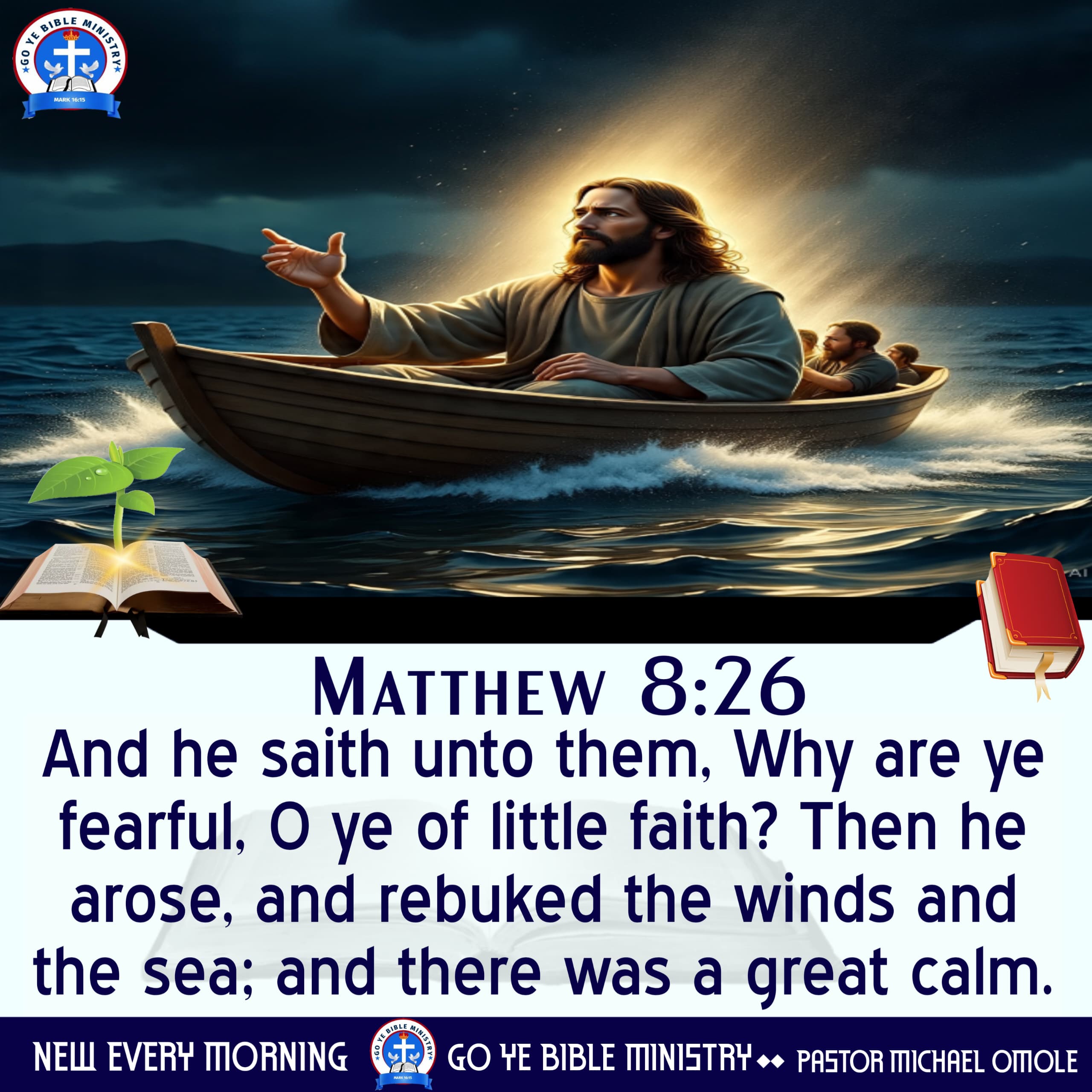 KEY VERSE: And he saith unto them, Why are ye fearful, O ye of little faith? Then he arose, and rebuked the winds and the sea; and there was a great calm. (v. 26)