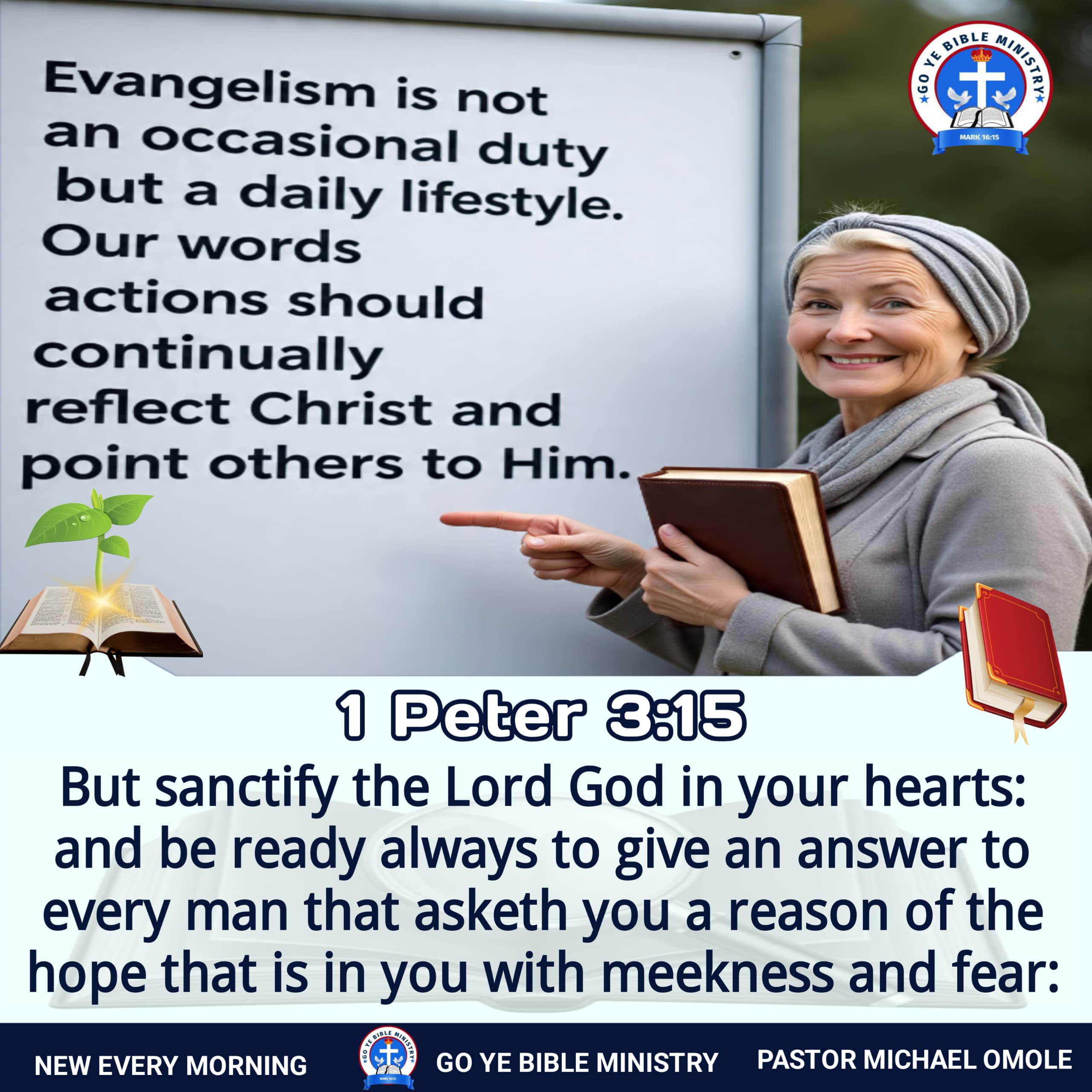 TEXT: But sanctify the Lord God in your hearts: and be ready always to give an answer to every man that asketh you a reason of the hope that is in you with meekness and fear: (1 Peter 3:15)