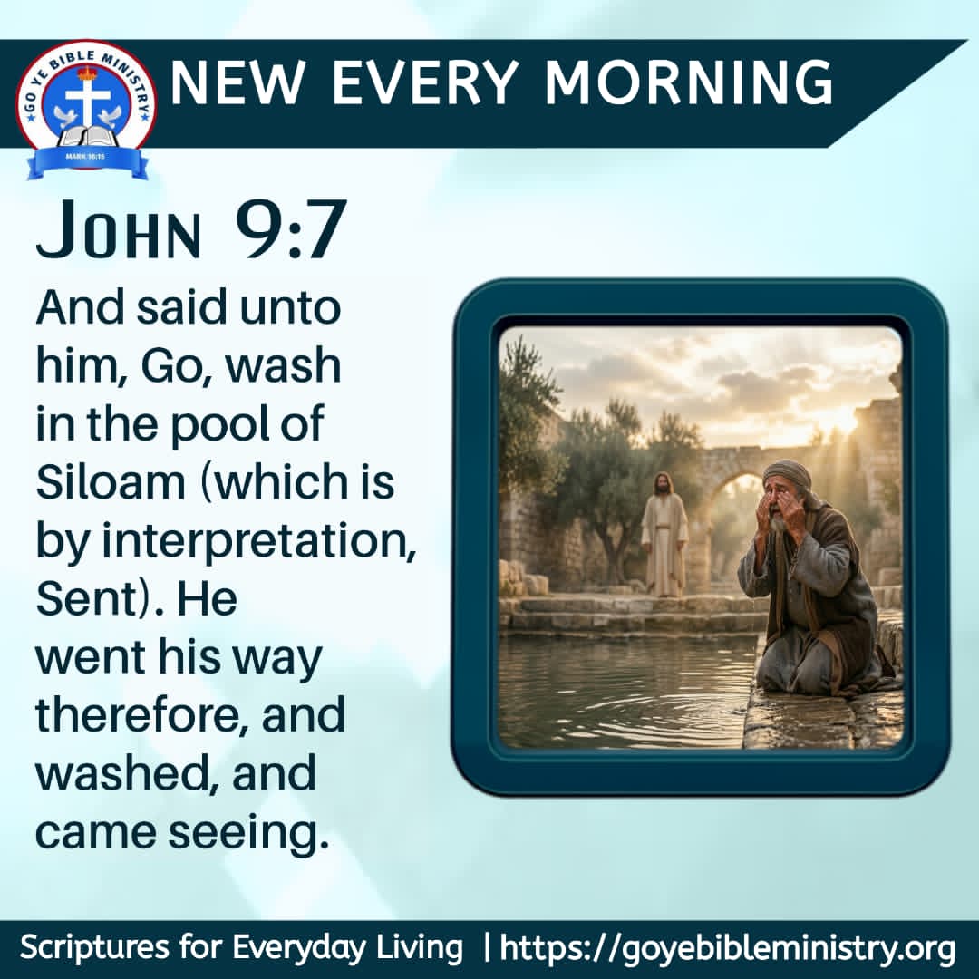TEXT: And said unto him, Go, wash in the pool of Siloam (which is by interpretation, Sent.) He went his way therefore, and washed, and came seeing. (John 9:7)