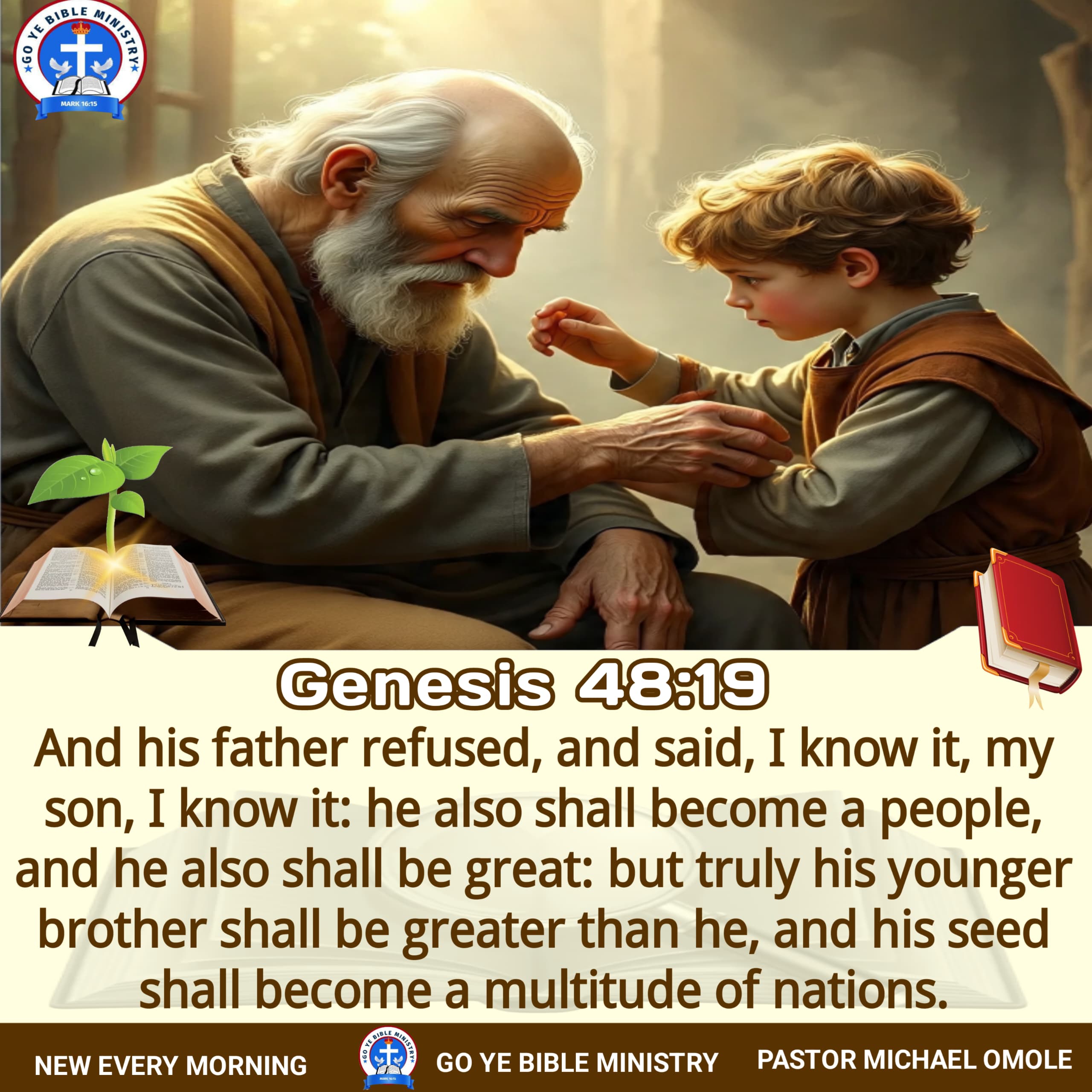 And his father refused, and said, I know it, my son, I know it: he also shall become a people, and he also shall be great: but truly his younger brother shall be greater than he, and his seed shall become a multitude of nations.