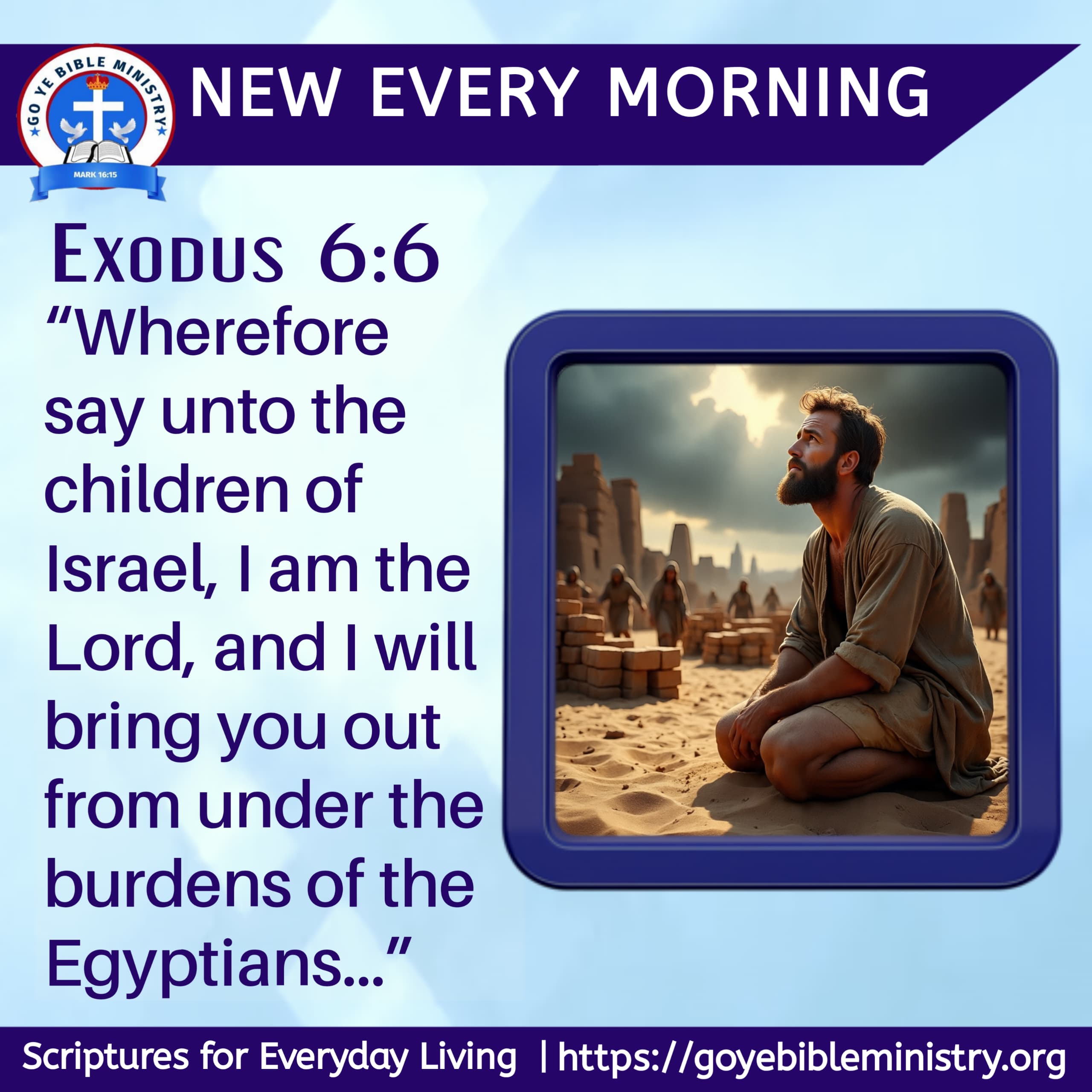KEY VERSE: “Wherefore say unto the children of Israel, I am the Lord, and I will bring you out from under the burdens of the Egyptians…” —Exodus 6:6
