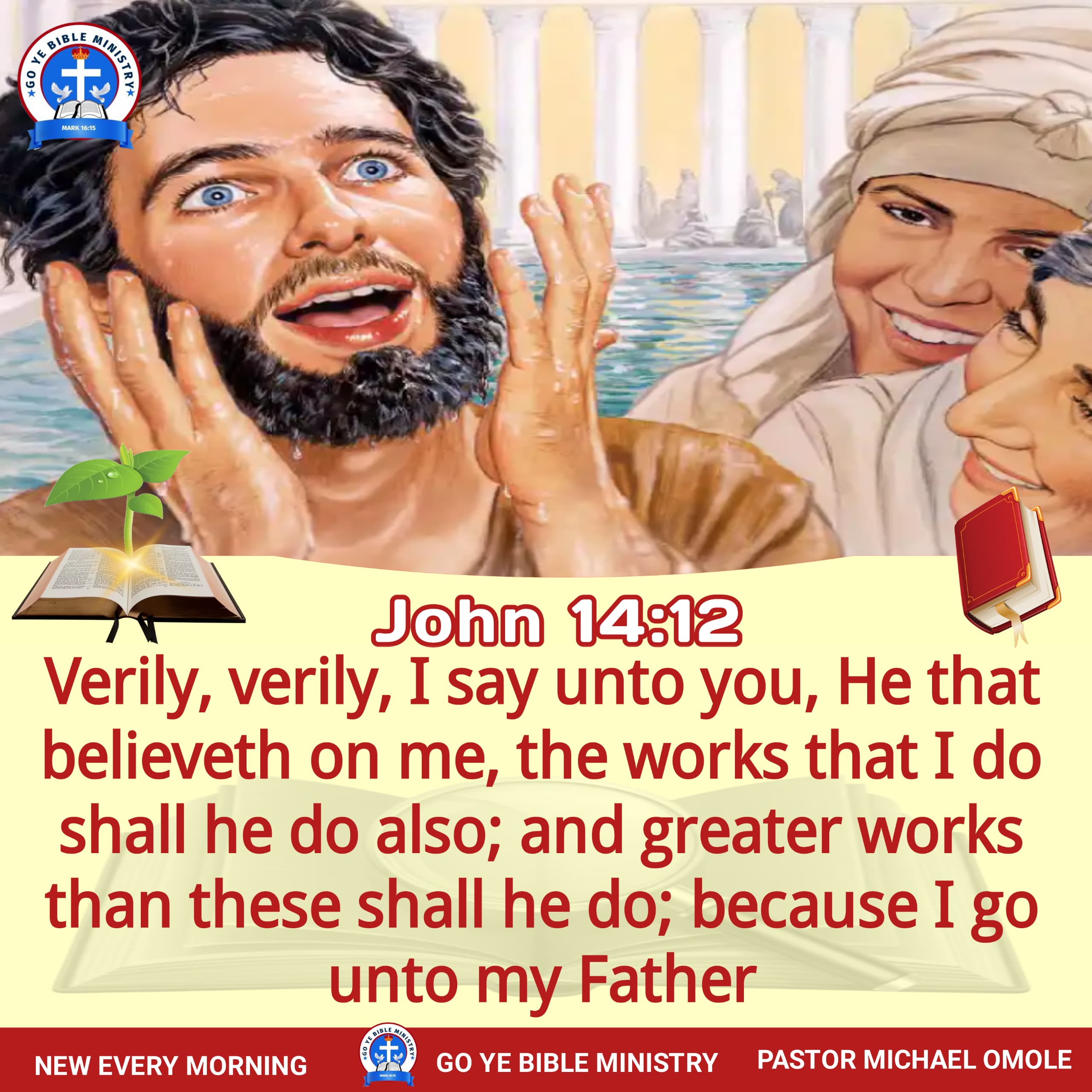 TEXT:”Verily, verily, I say unto you, He that believeth on me, the works that I do shall he do also; and greater works than these shall he do; because I go unto my Father.” John 14:12 (KJV)