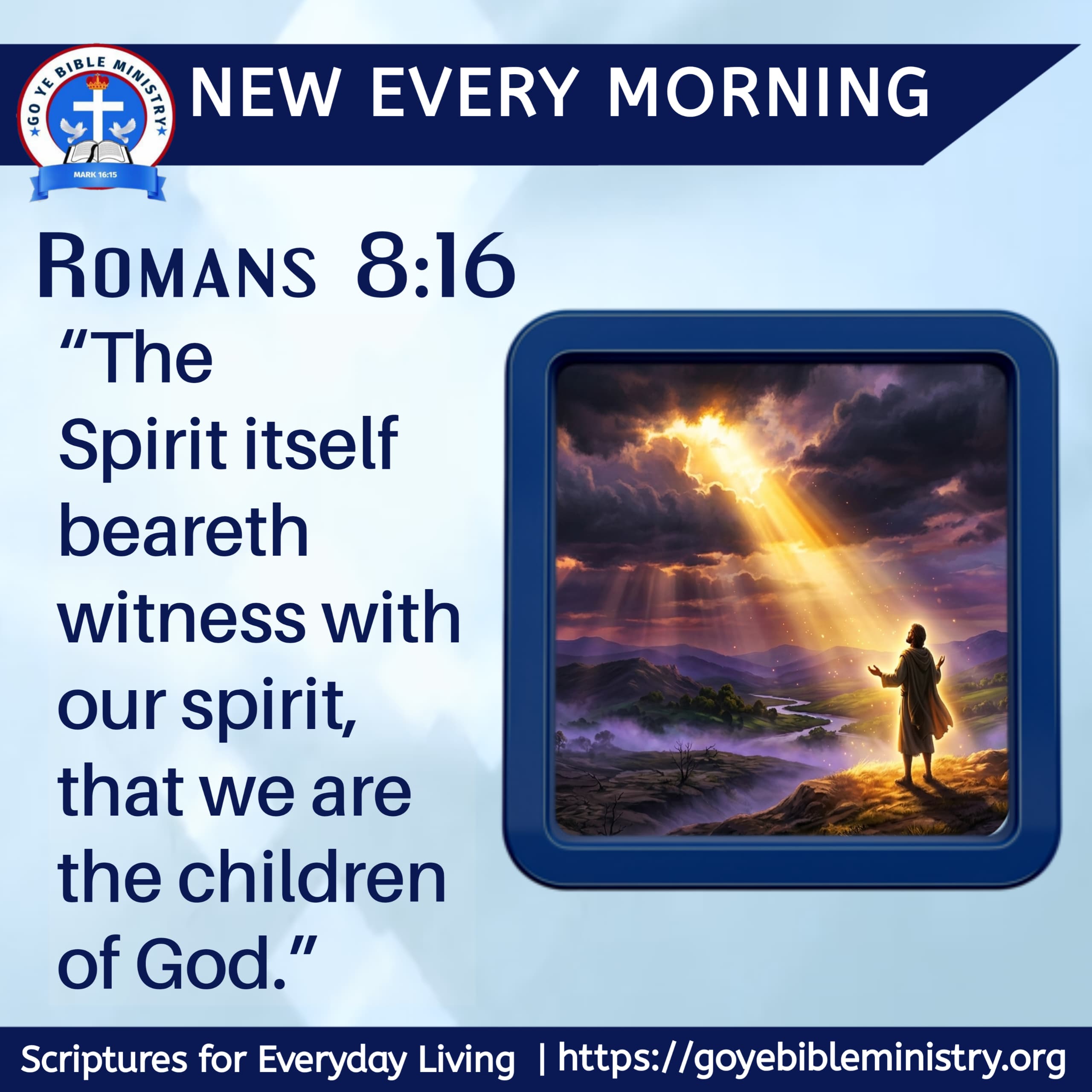 KEY VERSE : “The Spirit itself beareth witness with our spirit, that we are the children of God.” — Romans 8:16