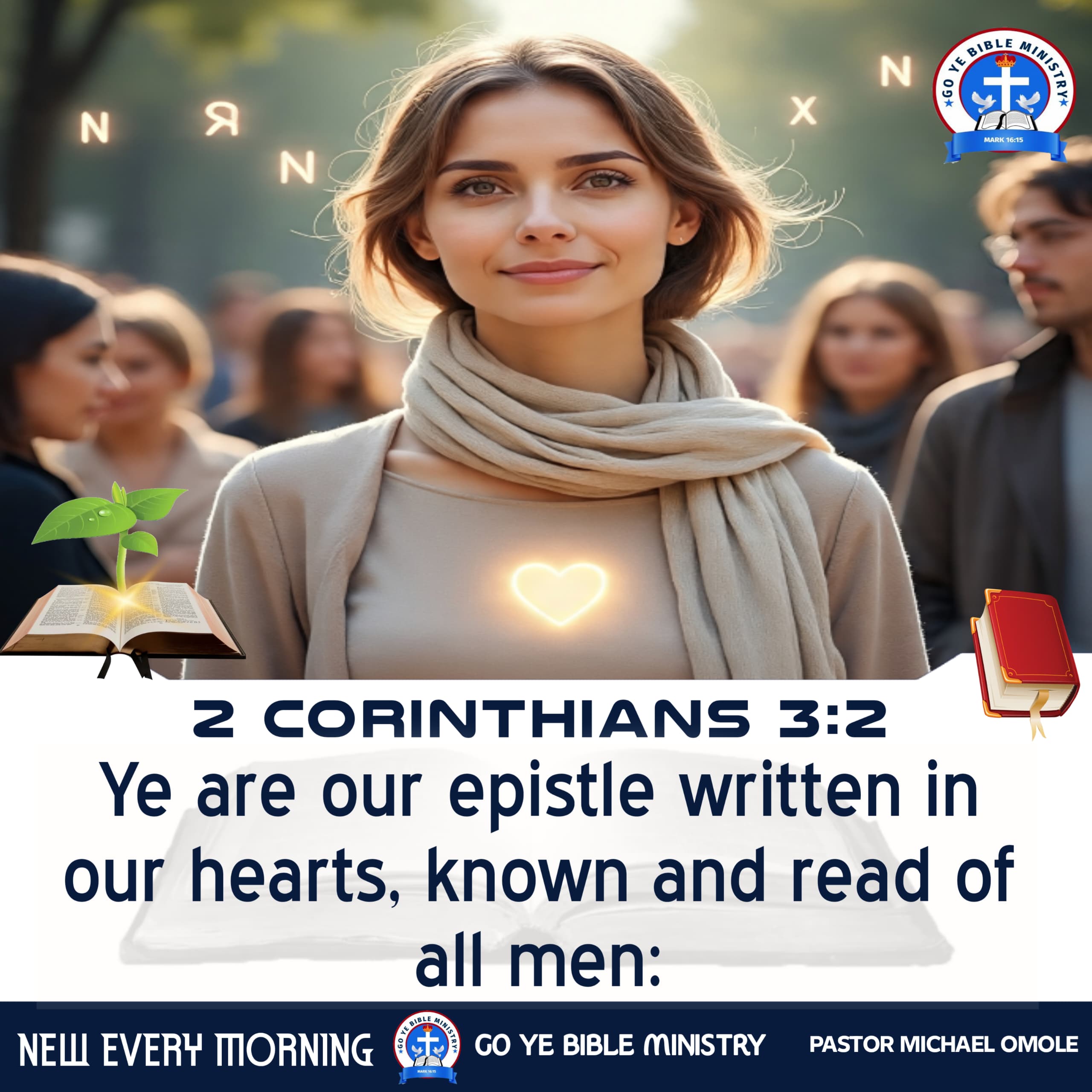 TEXT: Ye are our epistle written in our hearts, known and read of all men, written not with ink, but with the Spirit of the living God; not in tables of stone, but in fleshy tables of the heart.” (2 Corinthians 3:2-3)