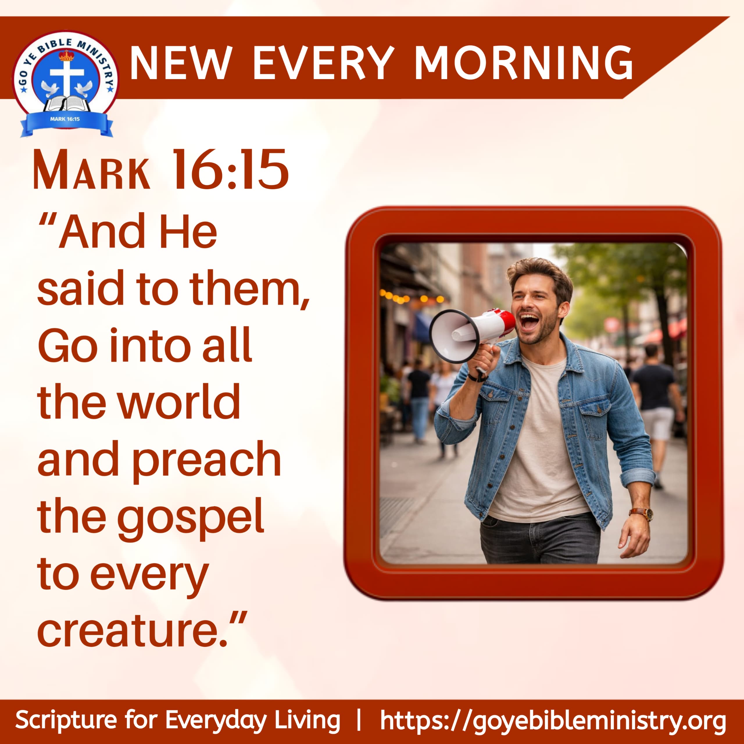 TEXT: “And He said to them, Go into all the world and preach the gospel to every creature.”— Mark 16:15